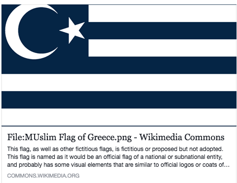 Η εικόνα της παραποιημένης ελληνικής σημαίας έχει την ημισέληνο στη θέση του σταυρού.